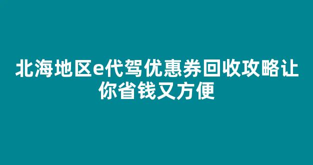 北海地区e代驾优惠券回收攻略让你省钱又方便