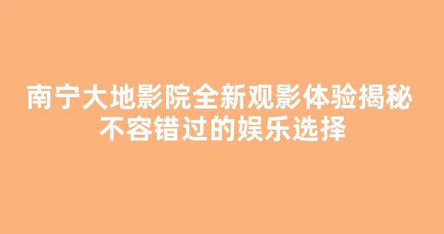 你最近有没有想过,周末该去哪里放松一下?如果你在南宁,那我一定要告诉你一个不容错过的娱乐选择——南宁大地影院。这里不仅有最新的电影,还提供了全新的观影体验,绝对值得一试。