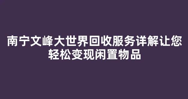你是否有一些闲置物品堆积在家里,既占地方又不知道如何处理?其实,这些闲置物品完全可以变现,而南宁文峰大世界的回收服务就是你的好帮手。今天,我将为你详细介绍这项服务,让你轻松变现闲置物品。