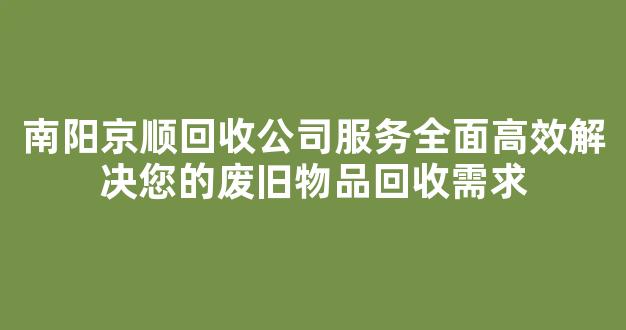 南阳京顺回收公司:您的废旧物品处理专家