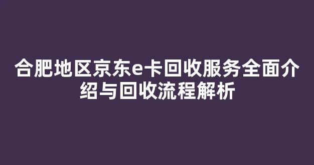 合肥地区京东e卡回收服务全面介绍