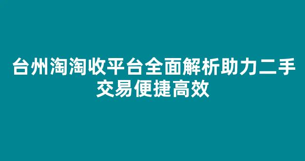台州淘淘收平台全面解析