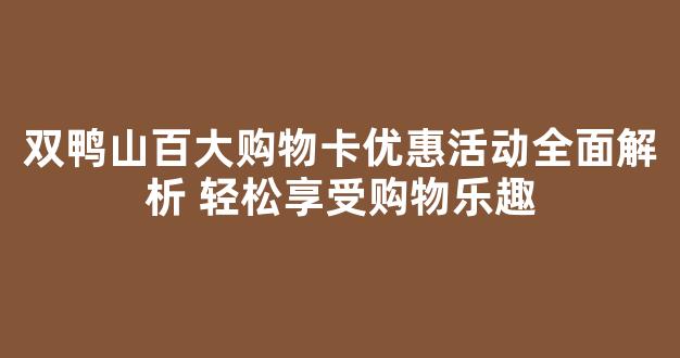 你是否正在寻找一种既能省钱又能享受购物乐趣的方式?那么,双鸭山百大购物卡的优惠活动绝对值得你关注。今天,我将为你全面解析这些优惠活动,帮助你轻松享受购物的乐趣。