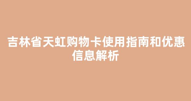 以上是关于吉林省天虹购物卡的使用指南和优惠信息解析。希望这些信息能帮助你更好地使用天虹购物卡,享受购物的乐趣和优惠。