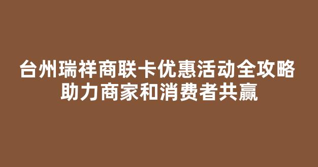以上就是关于台州瑞祥商联卡优惠活动的全攻略。无论你是消费者还是商家,这张卡都能为你带来实实在在的好处。赶快行动起来吧!