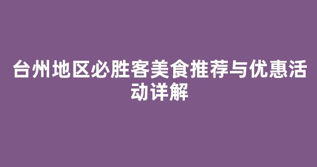 以上就是在台州地区必胜客的美食推荐与优惠活动详解。无论你是想要品尝美味的披萨,还是想要享受各种优惠活动,必胜客都是一个不错的选择。希望这篇文章能帮助你在台州找到最适合自己的必胜客美食和优惠活动。