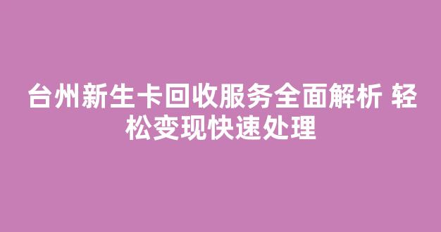 你是否有一张闲置的台州新生卡,不知道该如何处理?其实,这张卡可以通过回收服务轻松变现。今天,我将为你全面解析台州新生卡回收服务,帮助你快速处理闲置卡片,让它们变成实实在在的现金。