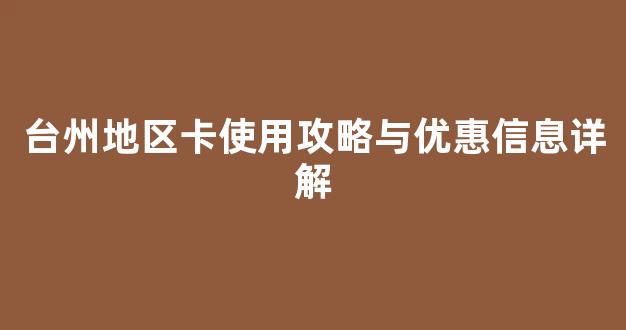 如果你在台州生活或旅游,拥有一张台州地区卡绝对是个明智的选择。这张卡不仅方便快捷,还能为你带来不少优惠。今天,我就来为你详细讲解台州地区卡的使用攻略和优惠信息,帮助你更好地享受它的便利。