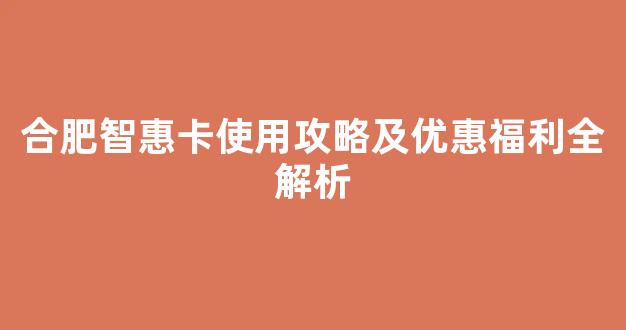 合肥智惠卡使用攻略及优惠福利全解析