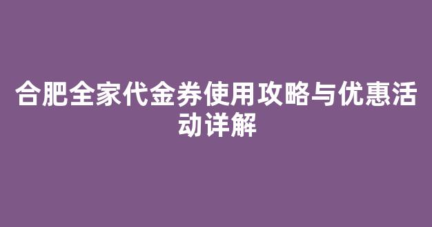 合肥全家代金券使用攻略与优惠活动详解