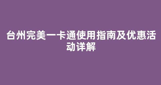 如果你在台州生活或旅游,完美一卡通绝对是你不可错过的神器。这张卡不仅方便快捷,还能帮你省下不少钱。今天,我就来给你详细介绍一下完美一卡通的使用方法和优惠活动。
