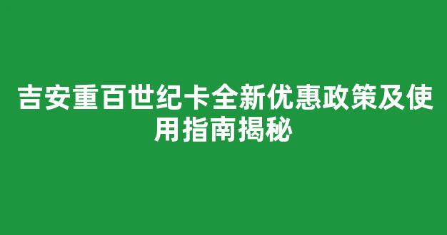 吉安重百世纪卡全新优惠政策及使用指南揭秘