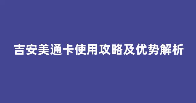 如果你正在寻找一种方便快捷的支付方式,吉安美通卡绝对是一个不错的选择。这张卡不仅可以在吉安地区的多个商家使用,还能享受各种优惠和积分奖励。今天,我将为你详细介绍吉安美通卡的使用攻略和它的独特优势,帮助你更好地利用这张卡。