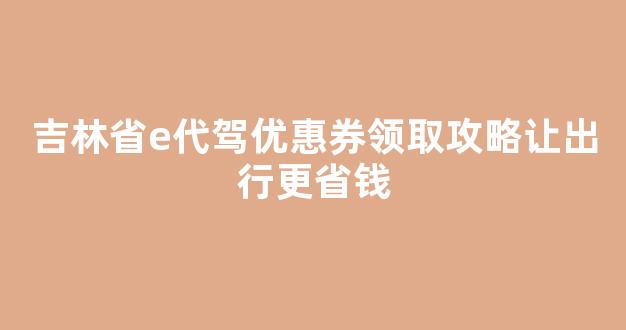 通过以上几个步骤,你可以轻松领取并使用e代驾优惠券,让你的出行更加省钱。希望这些攻略对你有所帮助,祝你在吉林省的每一次出行都愉快又经济!