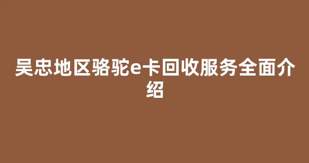 通过以上介绍,相信你对吴忠地区的骆驼e卡回收服务有了全面的了解。如果你有闲置的骆驼e卡,不妨试试沃卡回收,体验一下安全快捷的服务吧!