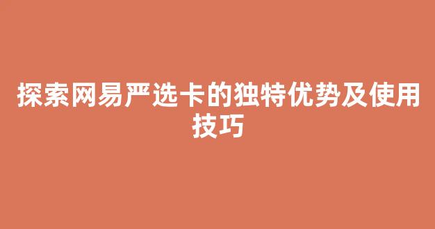 网易严选卡作为网易推出的一种会员卡,不仅为用户提供了丰富的购物体验,还拥有许多独特的优势和实用的使用技巧。无论是在网易严选平台购物,还是在其他指定商户使用,严选卡都能为用户带来更高效、便捷、优惠的消费体验。本文将详细分析网易严选卡的优势和使用技巧,帮助你更好地了解如何充分发挥这一卡的潜力。
