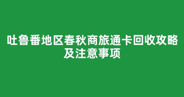 如果你手上有吐鲁番地区的春秋商旅通卡,但暂时用不上,或者已经过期,别急着扔掉。其实,这些卡片是可以回收的。今天,我就来给你讲讲吐鲁番地区春秋商旅通卡的回收攻略和注意事项,帮你轻松处理闲置卡片。