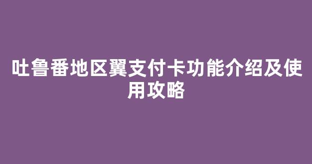 在吐鲁番地区,翼支付卡已经成为许多人日常生活中不可或缺的一部分。这张卡不仅方便快捷,还能为你带来许多实惠。今天,我将为你详细介绍翼支付卡的功能和使用攻略,帮助你更好地利用这张卡。