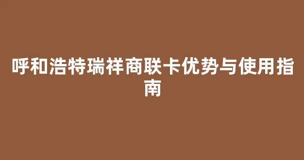 以上是关于呼和浩特瑞祥商联卡的详细介绍和使用指南。希望这些信息能帮助你更好地使用这张卡,享受更多优惠和便利。