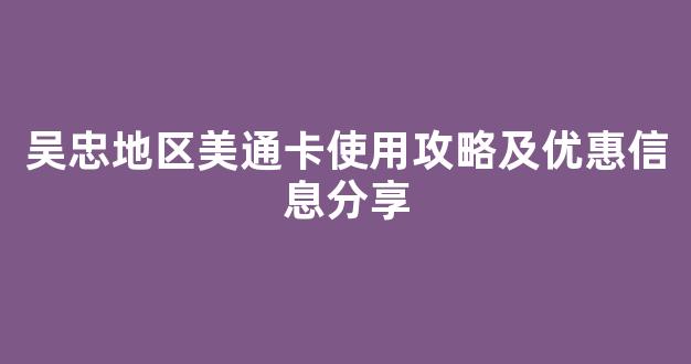 通过以上介绍,相信你对吴忠地区的美通卡有了更全面的了解。无论是日常消费还是享受优惠,美通卡都能为你带来便利和实惠。希望这些信息对你有所帮助!