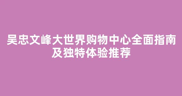 以上是关于吴忠文峰大世界购物中心的全面指南及独特体验推荐。希望这些信息能帮助你更好地规划你的购物和娱乐行程。