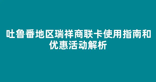 如果你在吐鲁番地区生活或旅游,瑞祥商联卡可能是你日常消费的好帮手。这张卡不仅可以在多个商家使用,还能享受各种优惠活动。今天,我将为你详细解析瑞祥商联卡的使用方法和优惠活动,帮助你更好地利用这张卡。