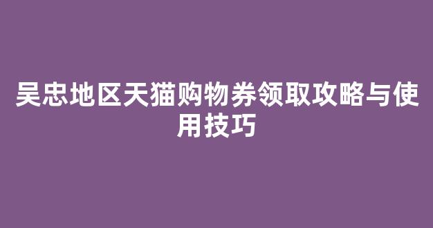 如果你在吴忠地区,想要在天猫上购物时省钱,那么领取天猫购物券是一个不错的选择。天猫购物券可以帮助你在购买商品时享受更多优惠,但很多人可能不知道如何领取和使用。今天,我将为你详细介绍吴忠地区天猫购物券的领取攻略和使用技巧,让你轻松省钱。