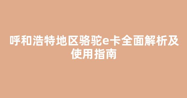 以上是关于呼和浩特地区骆驼e卡的全面解析及使用指南。希望这些信息能帮助你更好地利用这张卡,享受它带来的便利和优惠。