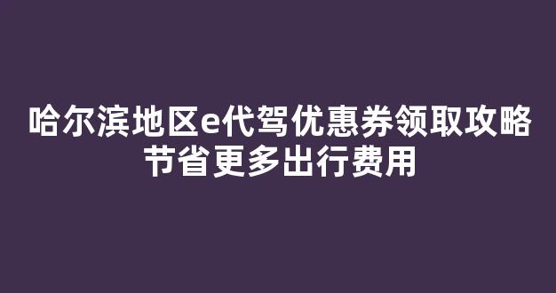 以上这些方法都能帮助你在哈尔滨地区领取e代驾的优惠券,节省更多出行费用。希望你能充分利用这些攻略,享受每一次出行的便利和实惠。
