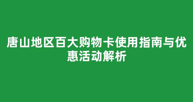 如果你手头有一张唐山地区的百大购物卡,那么恭喜你,你已经拥有了在唐山各大商场购物的便利和优惠。百大购物卡不仅可以在唐山地区的百大商场使用,还能享受各种专属折扣和活动。今天,我将为你详细解析这张购物卡的使用方法和优惠活动,帮助你更好地利用它。
