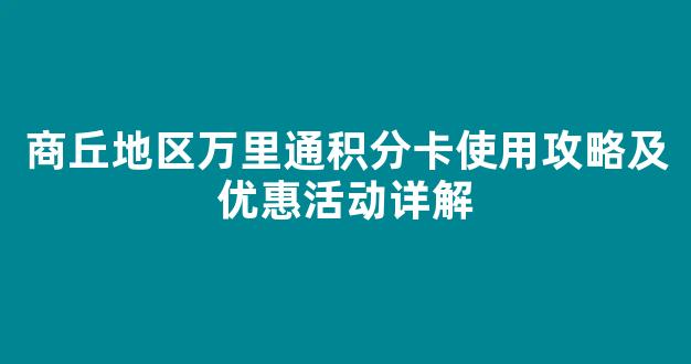 如果你在商丘地区,手头有一张万里通积分卡,那么恭喜你,这张卡可以为你带来不少实惠。今天我就来详细告诉你如何使用这张卡,以及如何通过它参与各种优惠活动。