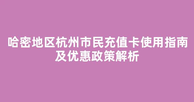 以上是关于哈密地区杭州市民充值卡的使用指南及优惠政策解析。希望这些信息能帮助你更好地使用这张卡,并享受到更多的便利和优惠。