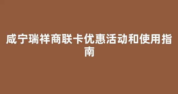 如果你手头有一张咸宁瑞祥商联卡,那你一定想知道如何充分利用它来享受更多优惠和便利。今天,我将为你详细介绍这张卡的使用方法和相关活动,帮助你更好地规划消费。