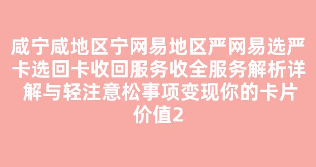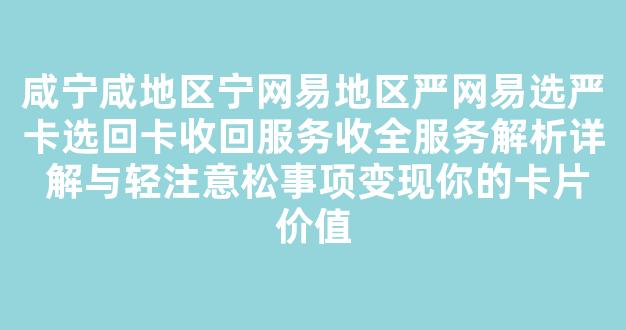 通过以上解析,相信你已经对咸宁地区的网易严选卡回收服务有了更深入的了解。如果你手上有闲置的卡片,不妨试试沃卡回收,轻松变现你的卡片价值。
