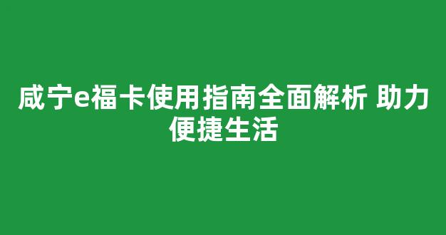 咸宁e福卡使用指南全面解析 助力便捷生活