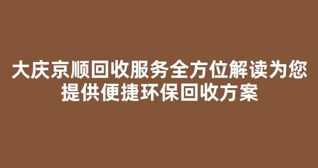 大庆京顺回收服务是一家专注于环保回收的专业平台,致力于为用户提供高效、安全的废旧物品回收方案。无论是家电、金属、纸张,还是电子产品,他们都能提供上门回收服务,让你足不出户就能解决废旧物品的处理问题。