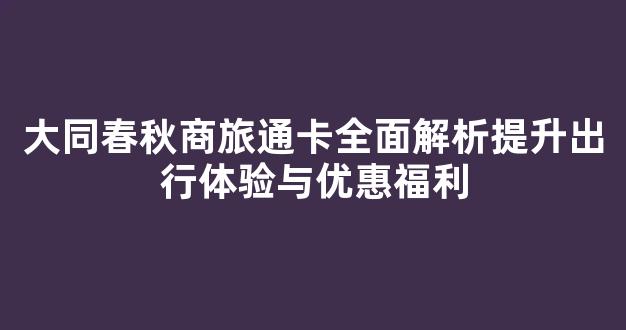 你是否经常出差或旅行?如果是,那你一定需要一张大同春秋商旅通卡。这张卡不仅能提升你的出行体验,还能为你带来各种优惠福利。今天,我将为你详细解析这张卡的功能和优势,帮助你更好地利用它。