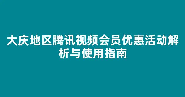 大庆地区腾讯视频会员优惠活动解析与使用指南