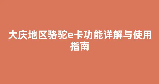通过以上介绍,相信你已经对大庆地区的骆驼e卡有了全面的了解。它不仅功能强大,使用方便,还能帮你省钱。如果你还没有办理骆驼e卡,不妨尽快行动吧!