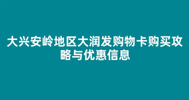 如果你生活在大兴安岭地区,并且经常去大润发购物,那么你一定需要了解如何购买和使用大润发购物卡。大润发购物卡不仅方便,还能帮你省下不少钱。今天,我就来给你详细介绍一下大兴安岭地区大润发购物卡的购买攻略和优惠信息。