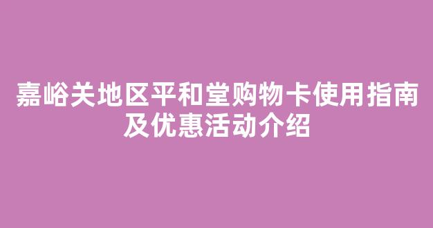 以上是关于嘉峪关地区平和堂购物卡的使用指南和优惠活动介绍。希望这些信息能帮助你在购物时更加方便和实惠。