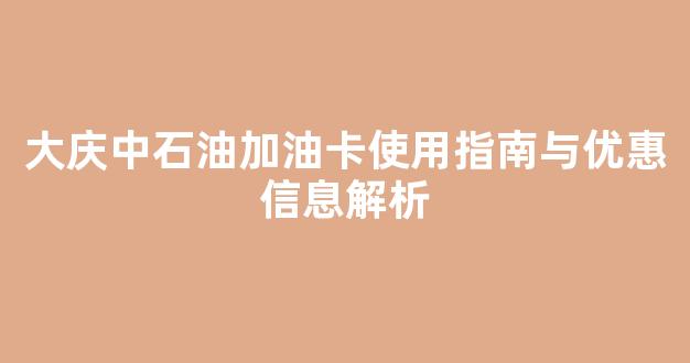 以上是关于大庆中石油加油卡的使用指南和优惠信息解析。希望这些信息对你有所帮助,让你更好地使用这张加油卡。
