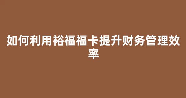 如何利用裕福福卡提升财务管理效率