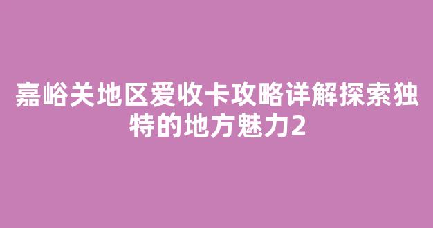 如果你对嘉峪关地区感兴趣,并且想要深入了解这里的独特魅力,那么这篇攻略就是为你准备的。嘉峪关不仅是一个历史悠久的城市,还拥有丰富的文化和自然景观。通过爱收卡的方式,你可以更好地探索这个地方的每一个角落。接下来,我将带你一步步了解如何在嘉峪关地区使用爱收卡,并发现它的独特之处。