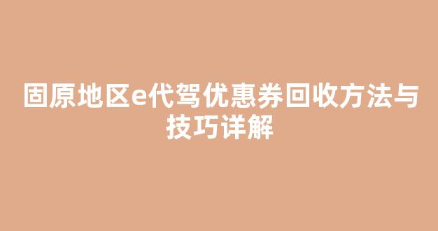固原地区e代驾优惠券回收方法与技巧详解