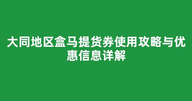 如果你在大同地区生活,并且经常在盒马购物,那么你一定听说过盒马提货券。今天,我将为你详细讲解如何在大同地区使用盒马提货券,以及如何获取更多优惠信息。通过这篇文章,你将学会如何最大化利用这些提货券,享受更多购物乐趣。