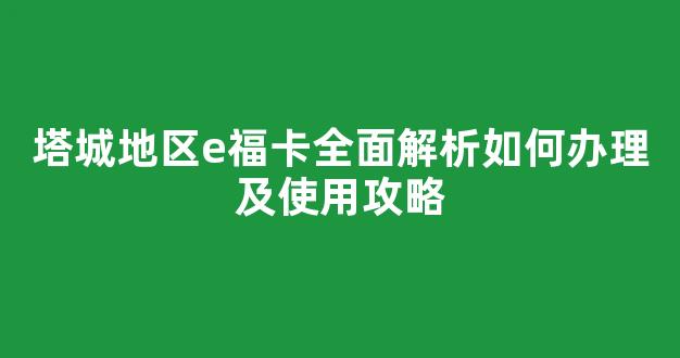 如果你生活在塔城地区,你一定听说过e福卡。这张卡不仅方便了日常生活,还能帮你省下不少钱。今天,我将为你全面解析e福卡的办理流程和使用攻略,让你轻松掌握这张“福利卡”的所有细节。
