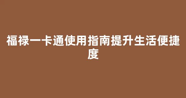 福禄一卡通使用指南提升生活便捷度