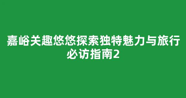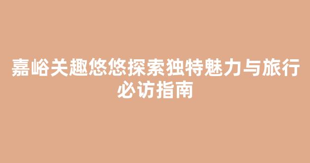 嘉峪关趣悠悠探索独特魅力与旅行必访指南
