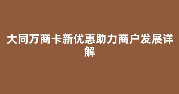大同万商卡是一种多功能的消费卡,顾客可以用它在合作的商户处进行消费。这张卡不仅方便了顾客的支付,还能为商户带来更多的客流。现在,大同万商卡推出了新的优惠活动,旨在帮助商户吸引更多顾客,提升销售额。